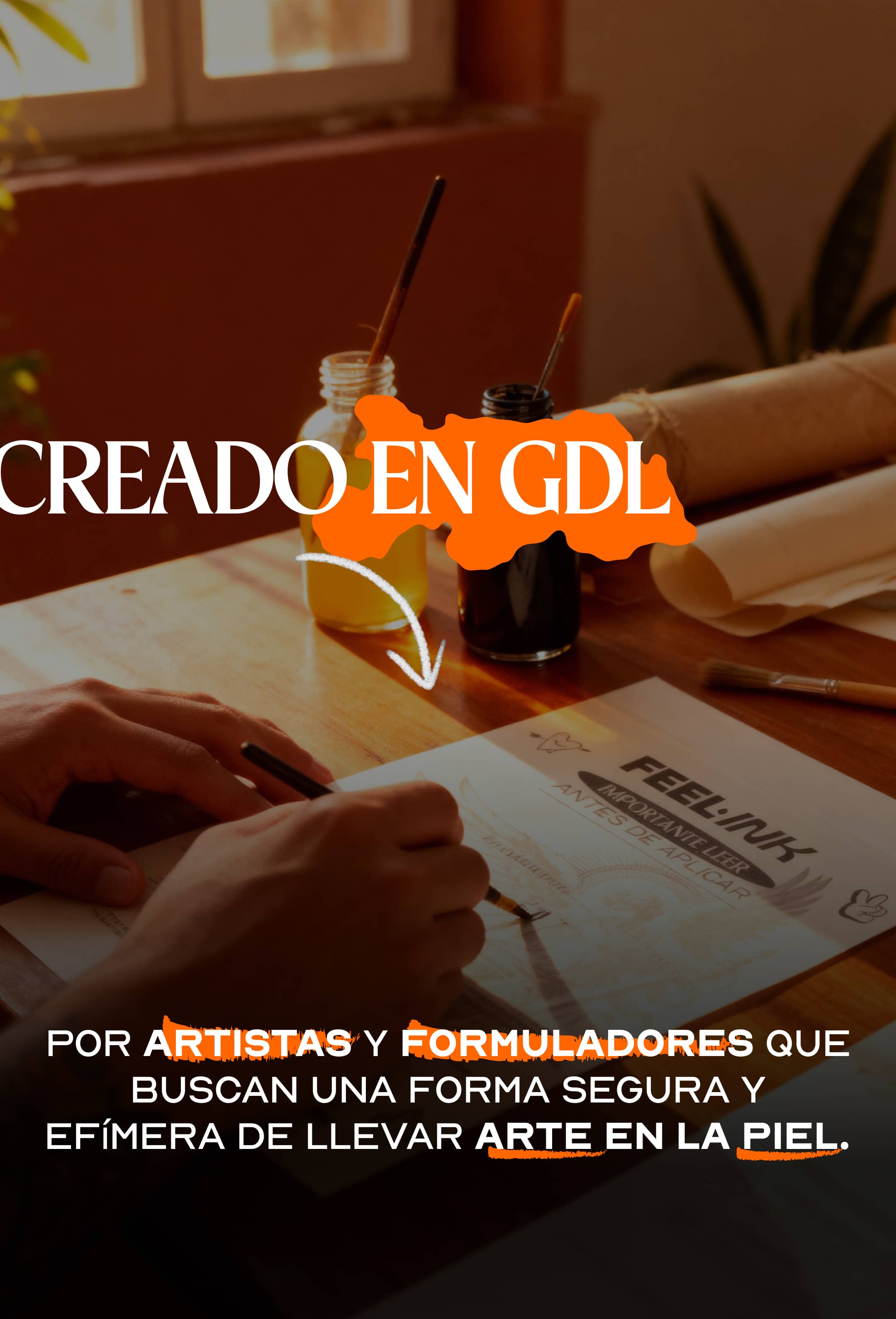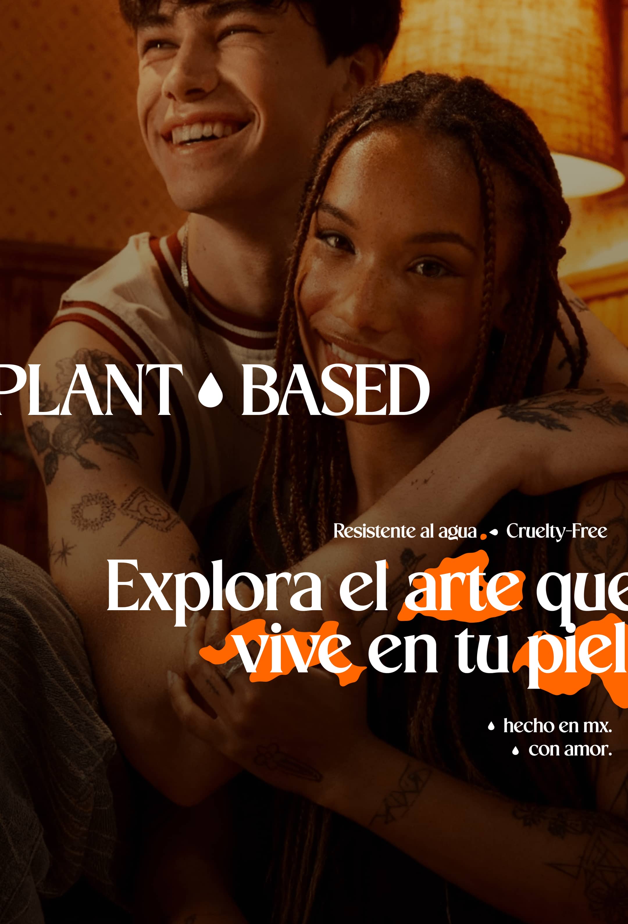 Nuestra tinta a base de plantas penetra la capa superficial de tu piel y se desvanece naturalmente con la exfoliación.