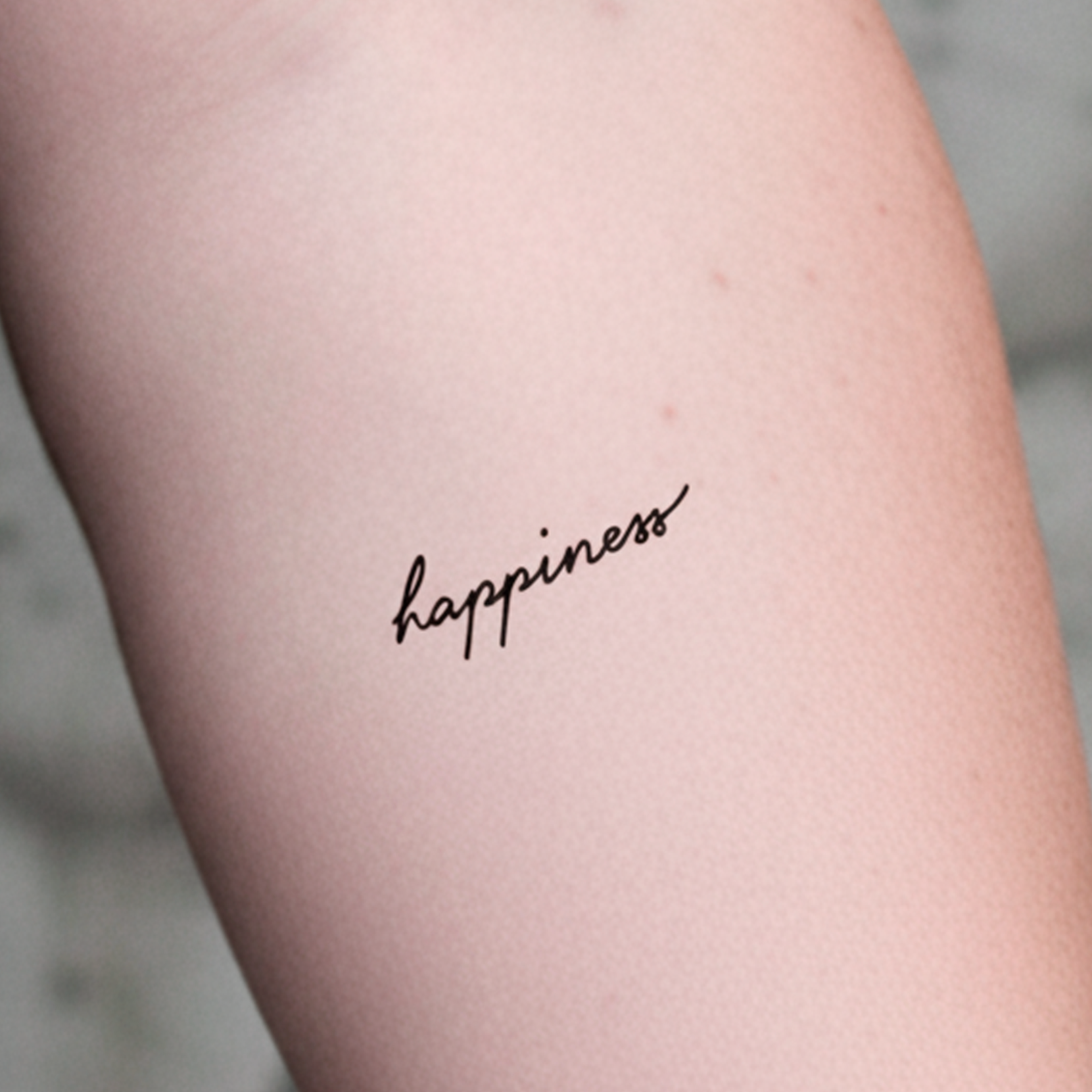 Lleva tu arte contigo con este tatuaje temporal ultrarrealista que celebra lo simple y esencial: la felicidad.