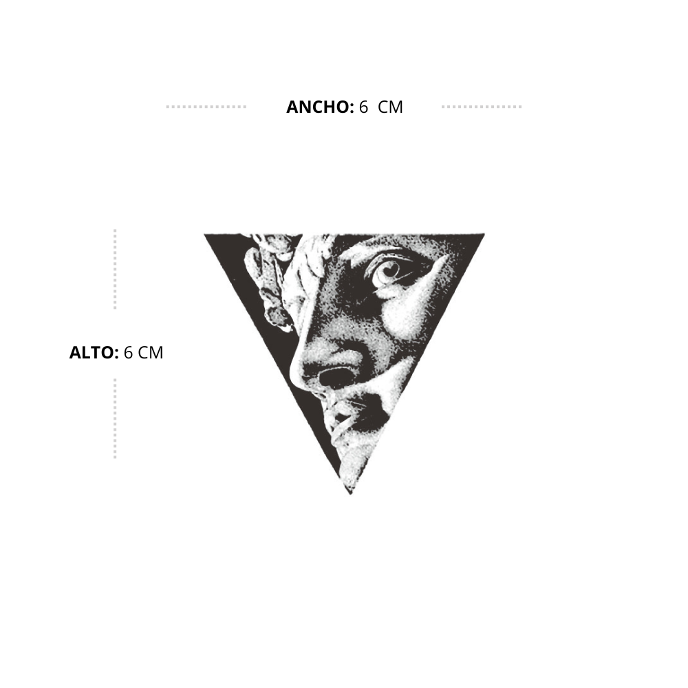 Inspirado en la famosa escultura de Miguel Ángel, este diseño presenta a David en un triángulo, simbolizando fuerza y perfección.