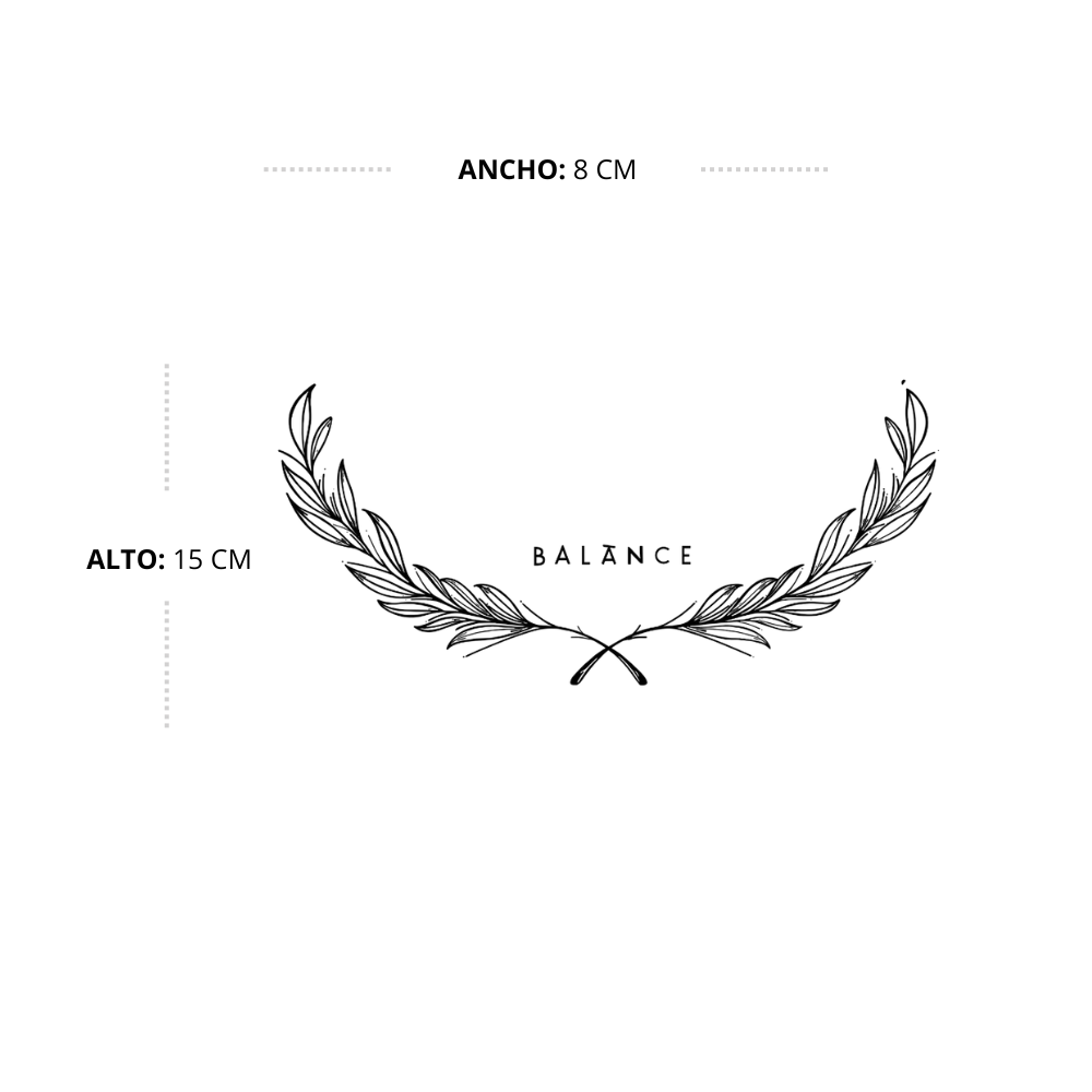 Esta pieza combina la elegancia de la ilustración botánica con el concepto fundamental del equilibrio. Las ramas entrelazadas simbolizan el crecimiento y la estabilidad, abrazando la palabra "Balance" como centro de gravedad. Con un trazo fino y detallado, este diseño representa la búsqueda de la equidad entre la mente, el cuerpo y el entorno, evocando una sensación de paz y triunfo interior.